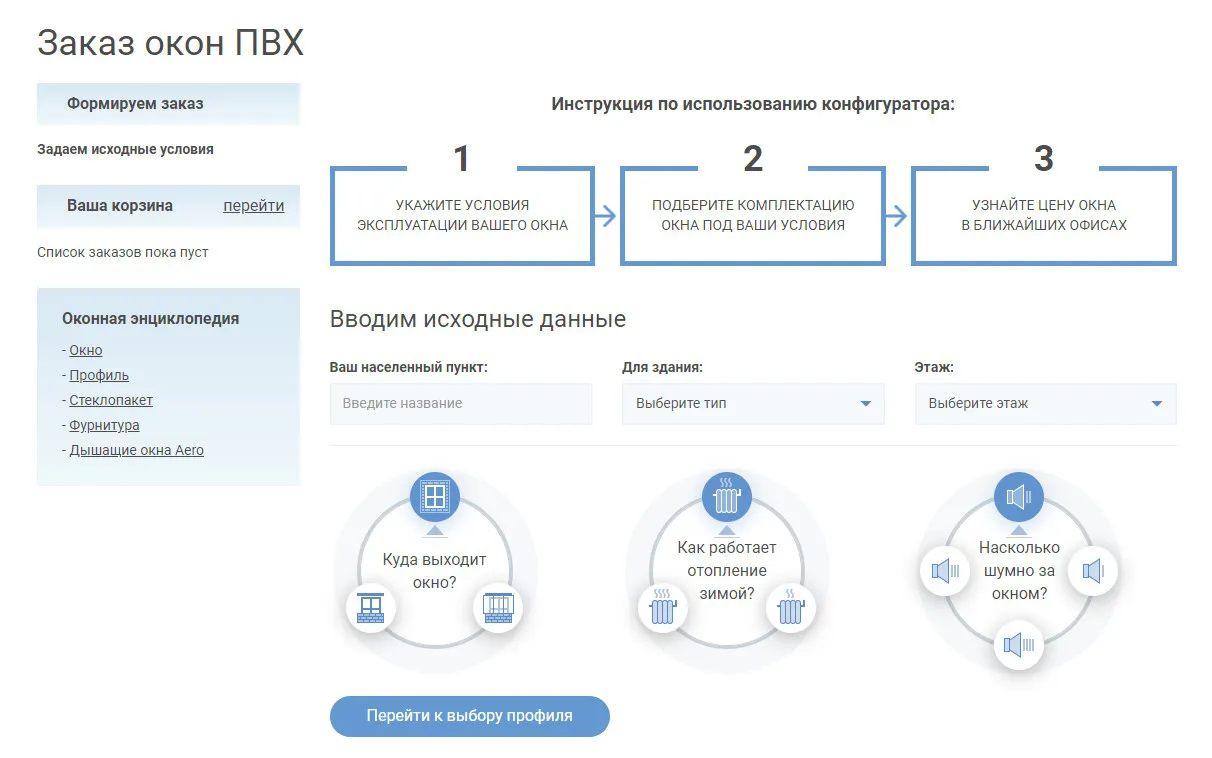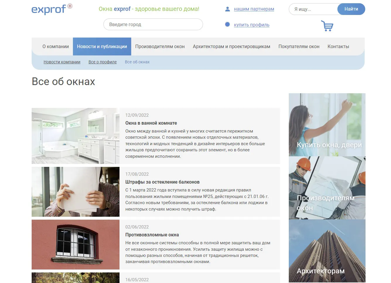 Для пользы простых покупателей были созданы такие разделы как видеоблог и советы, а чтобы повысить конверсию заказов - каталог профилей, список компаний-производителей, работающих с профилями ЭксПроф в их городе, и нтерактивный конструктор систем остекления.