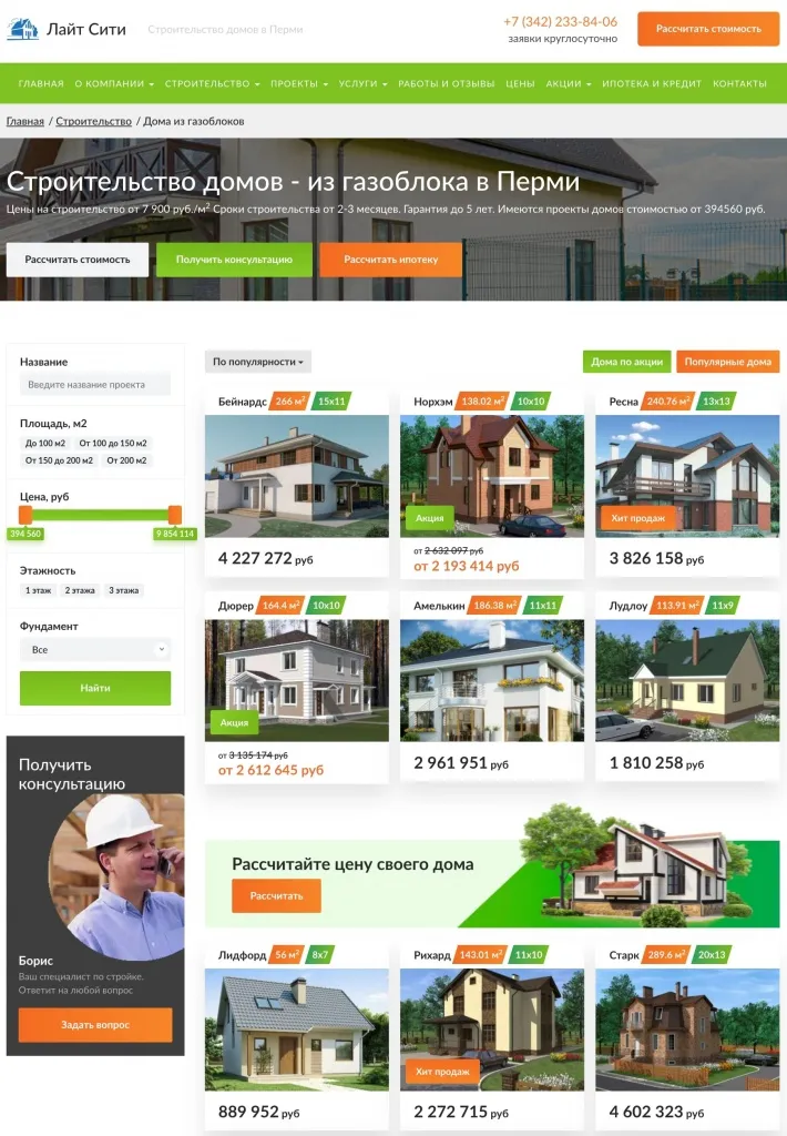Четвертый этап – контент-маркетинг. На основе конкурентного анализа сделали вывод: необходимо описание каждой услуги (на некоторых сайтах было более 500 страниц), и презентация выполненных проектов (ранее у клиента было около 100 проектов домов на сайте, совместно с нами, список расширился до более 4 000 проектов).
