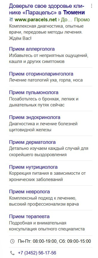 - Показы по запросам брендов конкурентов и их сайтам действуют по обратному принципу - позволяют переманить потенциальных клиентов из запросов по другим клиникам.